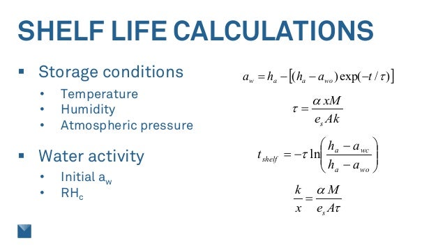 This Guide to Calculating the Shelf Life of Foods contains background information on the factors that influence shelf life and a procedure to assist you to calculate the shelf life of foods. ASLT is a form Shelf-life assessment in which the stability or quality of the product is found out by keeping the sample in elevated conditions. The ASLT method was first introduced to the pharmaceutical product which was later adopted in food.